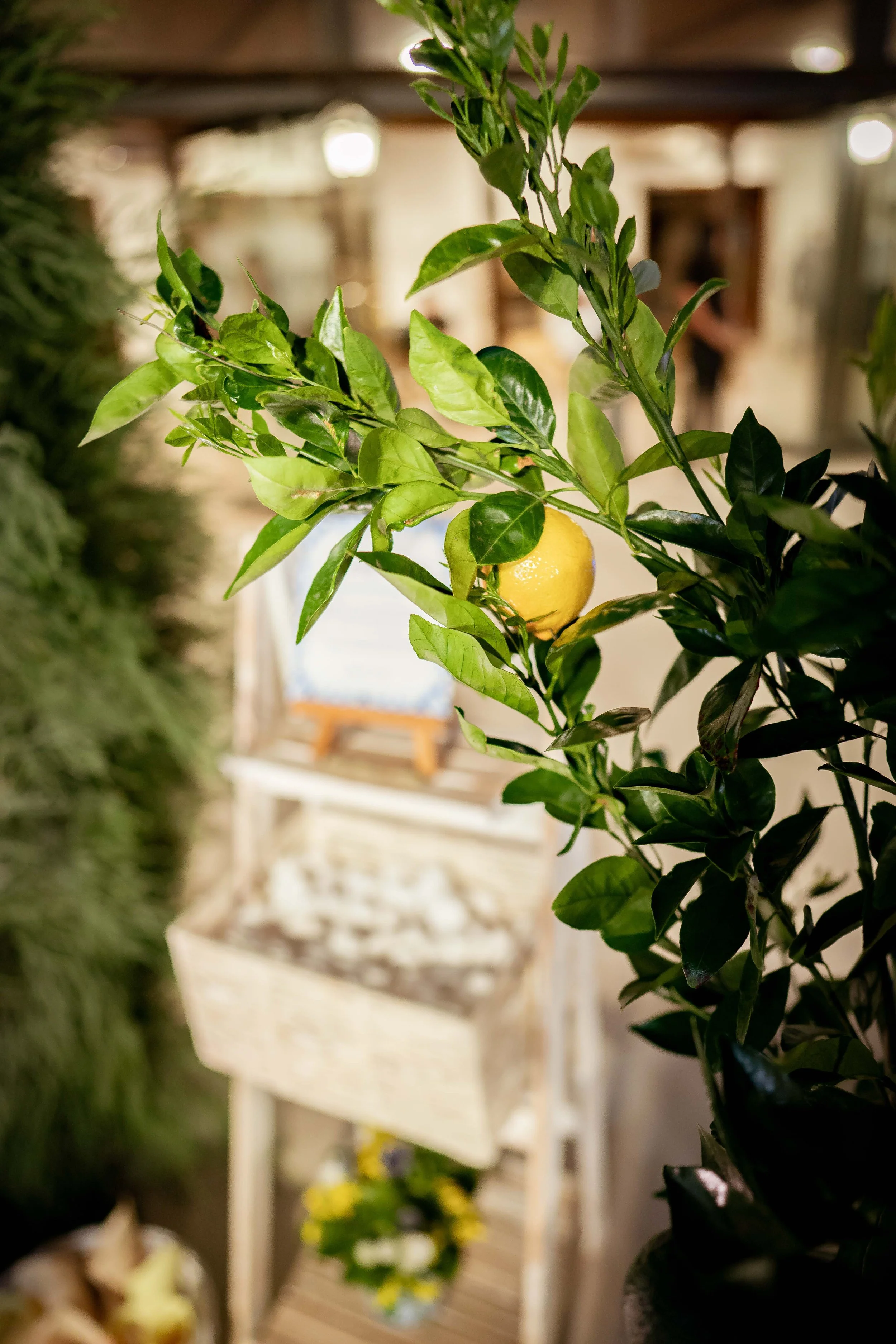 Adding a layer of luxe to the natural, earthy tones. The inclusion of fresh lemons not only adds a pop of color but also a sensory experience, with their fresh scent infusing the air.