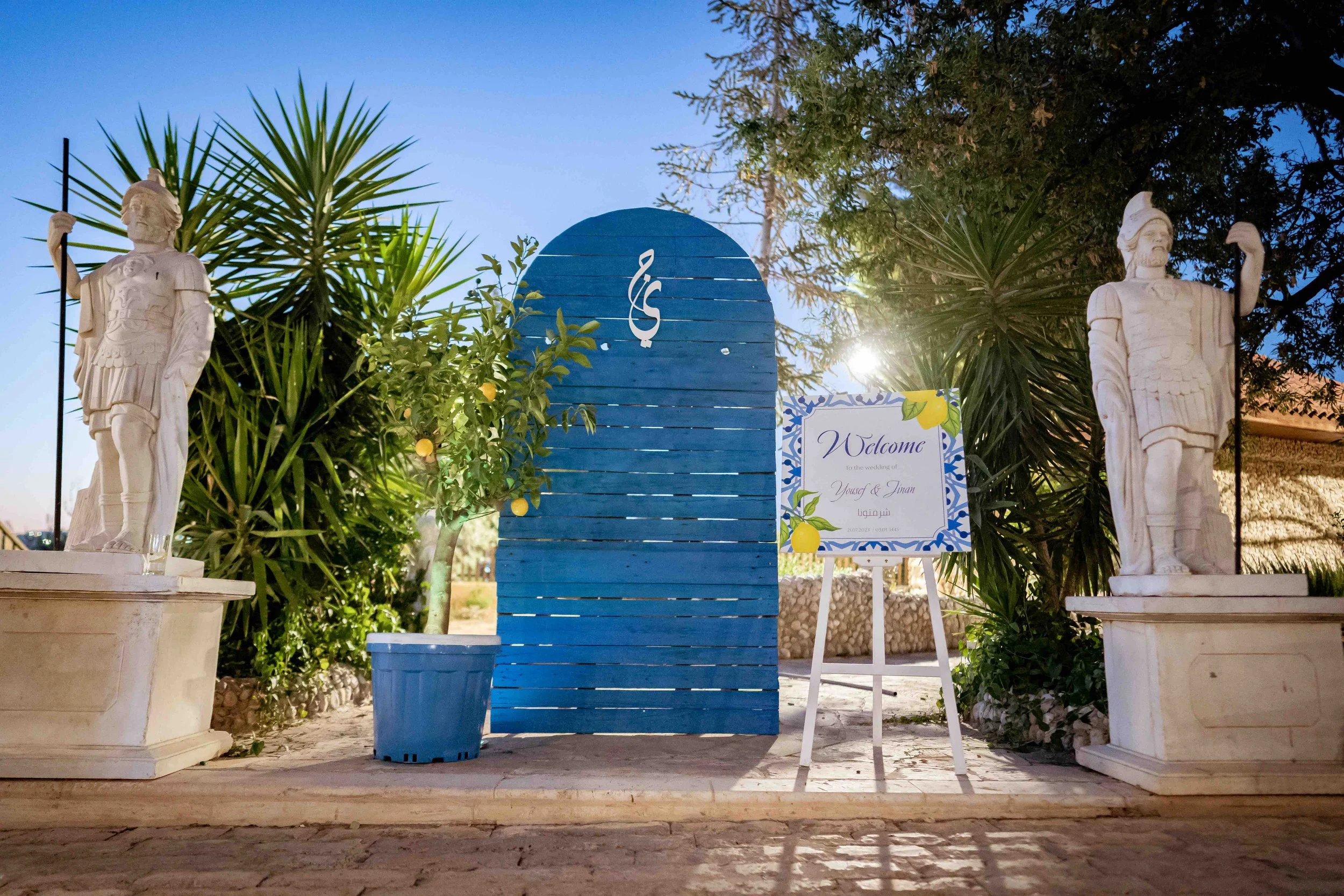 A theme that carries the rustic charm of the Mediterranean with the sophistication and sparkle of glamour. This theme is a tribute to the Lebanese & Palestinian heritage of the beautiful couple, the warmth of the sun, and the vibrant culture of the Mediterranean coast, all while incorporating elements of elegance and luxury that elevate the event to a glamorous affair.